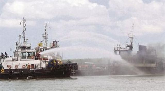 Sebuah Kapal Indonesia Terbakar di Malaysia