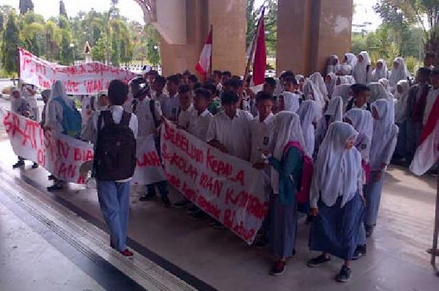 Tuntut Pendidikan Gratis, Puluhan Pelajar MAN Kampar Demo Kantor Bupati